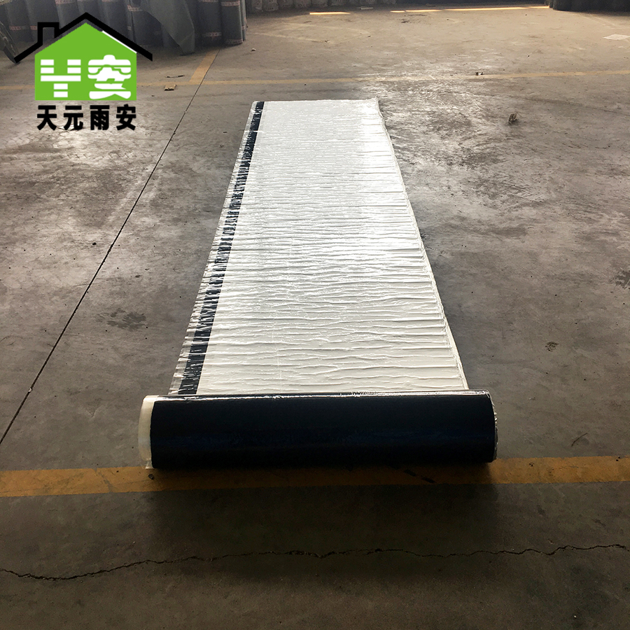 自粘聚合物改性沥青防水卷材是以SBS等合成橡胶、道路沥青及增粘剂为基料,以聚酯膜(PET)、聚乙烯膜(PE)、铝箔或天硅隔离膜为上表面材料,下表面敷以涂硅隔离膜为防粘层儿制成的自粘聚合物改性沥青无胎基防水卷材。